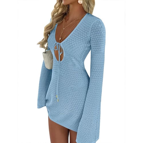 - Características: saída de praia feminina de crochê, mangas compridas, laço frontal, vazado, malha. Este maiô feminino é perfeito para praia, férias, uso diário.