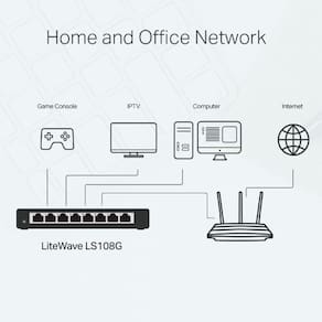 Switch 08 Portas Tp-link Ls108g Gigabit 10/100/1000mbps Informações do Produto Características Porta RJ45 de negociação automática 10/100 / 1000Mbos que suporta Auto-MDI / MDIX A tecnologia Ethernet verde economiza energia O controle de fluxo IEEE 802.3X fornece transferência de dados confiável Design de caixa de aço, desktop ou montagem na parede Suporte a função QoS 802.1p / DSCP Plug and play, nenhuma configuração necessária ESPECIFICAÇÕES TÉCNICAS | DIMENSÕES Standards and Protocols IEEE 802.3i/802.3u/ 802.3ab/802.3x, IEEE 802.1p Interface 8 10/100/1000Mbps, Auto-Negotiation, Auto-MDI/MDIX Ports Fan Quantity Fanless External Power Supply External Power Adapter (Output: 9VDC / 0.6A) LED Indicator System Power Link/Act indicators per port built into each RJ-45 port Dimensions ( W x D x H ) 6.2 x 3.9 x 1.0 in. (158 x 99.1x 25 mm) Max Power Consumption 3.7W(220V/50Hz) Max Heat Dissipation 12.617 Btu/hr PERFORMANCE Packet Forwarding Rate 11.9 Mpps MAC Address Table 4K Packet Buffer Memory 1.5 Mb Jumbo Frame 16 KB SOFTWARE FEATURES Advanced Features Green Technology 802.3X Flow Control 802.1P/DSCP QoS Transfer Method Store and Forward OTHERS Certification CE, FCC, RoHS Package Contents 8-Port 10/100/1000Mbps Desktop Switch Power Adapter Installation Guide Environment Operating Temperature: 0C~40C (32F~104F) Storage Temperature: -40C~70C (-40F~158F) Operating Humidity: 10% ~ 90% non-condensing Storage Humidity: 5%~90% non-condensing Ean: 6935364085452