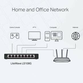 Switch 08 Portas Tp-link Ls108g Gigabit 10/100/1000mbps Informações do Produto Características Porta RJ45 de negociação automática 10/100 / 1000Mbos que suporta Auto-MDI / MDIX A tecnologia Ethernet verde economiza energia O controle de fluxo IEEE 802.3X fornece transferência de dados confiável Design de caixa de aço, desktop ou montagem na parede Suporte a função QoS 802.1p / DSCP Plug and play, nenhuma configuração necessária ESPECIFICAÇÕES TÉCNICAS | DIMENSÕES Standards and Protocols IEEE 802.3i/802.3u/ 802.3ab/802.3x, IEEE 802.1p Interface 8 10/100/1000Mbps, Auto-Negotiation, Auto-MDI/MDIX Ports Fan Quantity Fanless External Power Supply External Power Adapter (Output: 9VDC / 0.6A) LED Indicator System Power Link/Act indicators per port built into each RJ-45 port Dimensions ( W x D x H ) 6.2 x 3.9 x 1.0 in. (158 x 99.1x 25 mm) Max Power Consumption 3.7W(220V/50Hz) Max Heat Dissipation 12.617 Btu/hr PERFORMANCE Packet Forwarding Rate 11.9 Mpps MAC Address Table 4K Packet Buffer Memory 1.5 Mb Jumbo Frame 16 KB SOFTWARE FEATURES Advanced Features Green Technology 802.3X Flow Control 802.1P/DSCP QoS Transfer Method Store and Forward OTHERS Certification CE, FCC, RoHS Package Contents 8-Port 10/100/1000Mbps Desktop Switch Power Adapter Installation Guide Environment Operating Temperature: 0C~40C (32F~104F) Storage Temperature: -40C~70C (-40F~158F) Operating Humidity: 10% ~ 90% non-condensing Storage Humidity: 5%~90% non-condensing Ean: 6935364085452