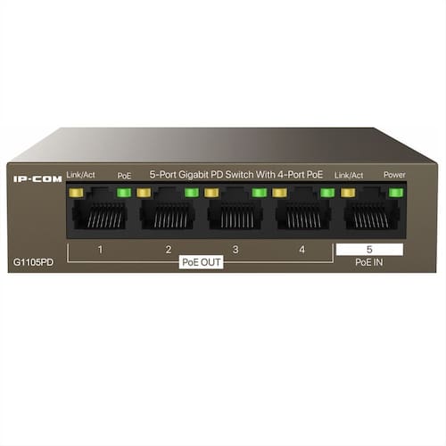 Switch 5 Portas IP-COM G1105PD - Gigabit - 4 Portas PoE e 1 Porta PoE In - Não Gerenciável