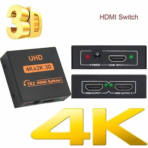 Descrição: características:O hd switch é um produto que pode alternar sinais hd de vários grupos para um dispositivo de exibição de alta definição, como hdtv, usando o botão manual. Fazer isso pode evitar conectar e desconectar cabos com frequência. Ele pode otimizar seu sistema de home theater para o melhor efeito.1 em 2 out hd divisor distribui 1 fonte hd para 2 hdmi exibe simultaneamente. Pode ser compatível com hd-dvd, sky-stb, ps3, xbox 360,etc. Oferece vídeo hd para supermercado, shopping center, hdtv, stb, dvd, compatível com hdcpFácil de instalar e operarDurável e conveniente, plug and playEspecificações:Sinal video da entrada: 0.5-1.0 volts p-pEntrada sinal ddc: 5 volts p-p ttl Escala máxima do único link: 1920x1020, 1080p,2k x 4k,2160pResolução hdmi: 480i/576i/480p/576p/720p/1080i/1080pResolução dvi: 480p/576i/576p/720p/1080i/1080pVersão hd: hd 1.4bLargura de banda: até 225 mhzDuração edid: 4 segundosAlimentação: dc 5v 1aTamanho: 6,35,82cmItens inclusos:1x switch duplicador splitter hdmi 1 entrada x 2 saidas divisor 4k 1.4 3d hub;1x alimentação ue eua plug