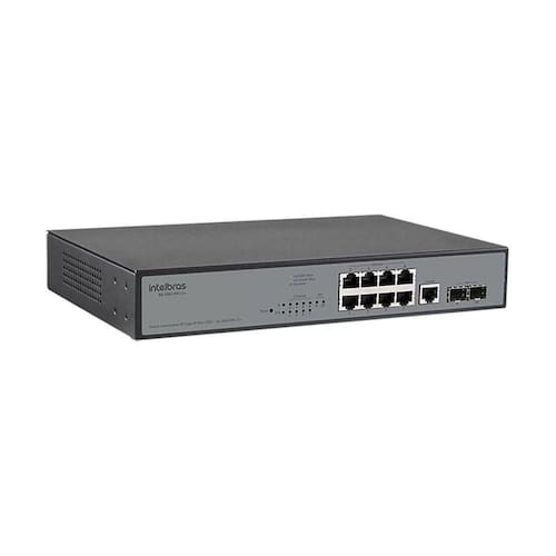 Switch gerenciável com 8 portas Giga + 2 portas Mini-Gbic: O SG 1002 MR L2+ é um switch com funções de gerenciamento de rede, que possui 8P portas com velocidade Gigabit Ethernet.