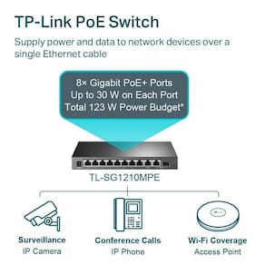 O TL-SG1210MPE é totalmente compatível com dispositivos PoE, como Câmeras IP, Access Points e Telefones IP.
