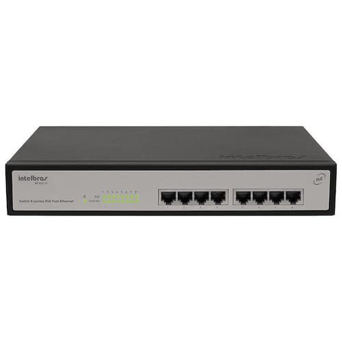 Alimentação PoE: Suporta dispositivos PoE conforme o padrão IEEE 802.3af, com 15.4 W por porta e 124 W de potência total. Conectividade Rápida: 8 Portas Fast Ethernet (10/100 Mbps) para transferências de dados rápidas e eficientes. Instalação Simples: Plug & Play para uma configuração rápida e prática, sem necessidade de configuração complexa. Compatibilidade de Padrões: Atende aos padrões Ethernet IEEE 802.3 (10BASE-T) e IEEE 802.3u (100BASE-TX). Full Duplex & Flow Control: Suporta comunicação simultânea em ambas as direções e controle de fluxo IEEE 802.3x para maior eficiência. Detecção Automática: Negociação de velocidade e detecção do padrão do cabo automáticas, garantindo a melhor performance. LEDs Indicadores: Painel frontal com LEDs que fornecem informações visuais sobre o status da conexão e alimentação. Fixação em Rack: Suporte para instalação em racks de 19?, facilitando a organização do seu ambiente. Suporte Técnico: Contamos com suporte técnico em todo o Brasil por meio da rede autorizada Intelbras, garantindo assistência sempre que necessário.