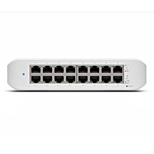 Switch PoE de Camada 2, com 16 portas, montável em parede (*) e silencioso sem ventoinha.Características:8 Portas RJ-45 de 1G com Suporte a PoE+8 Portas RJ-45 de 1GPotência Total PoE de 45WGerenciado pela Aplicação UniFi Network: Versão 7.2.94 ou Superior(*) Kit de Montagem Incluído.Funciona com a Aplicação UniFi NetworkGerencie suas redes através de uma única interfaceDesfrute de configurações intuitivas, além de controle e monitoramento robusto dos dispositivosFaça a atualização de firmware remotamenteGerencie de maneira fácil seus usuários e visitantesPersonalize o layout, arquitetura e privacidade dos hotspots de visitantesConfigure rapidamente e gerencie os dispositivos via app móvelEspecificaçõesMecânicaDimensões 191.7 x 185 x 43.7 mmPeso 1.2 kgHardwareTaxa Total de Transmissão Non-Blocking 16 GbpsConsumo Máximo de Energia 15WMétodo de Alimentação Entrada AC Universal: 100-240VACFonte de Alimentação Fonte Interna AC/DC 60WInterfaces de Rede (16) RJ-45 Ethernet de 10/100/1000 MbpsInterfaces PoE (8) PoE+ IEEE PoE/PoE+ (Pinos 1, 2+; 3, 6-)Interface de Gerência Ethernet In-BandPotencia Máxima PoE+ por Porta 30WModos Switch Gigabit Ethernet de Camada 2Temperatura de Operação -15 a 40° CUmidade de Operação 10 - 90% Sem CondensaçãoCertificações Anatel, CE, FCC, ICLEDSistemas (1) Energia, Azul/BrancoPiscando Branco: Boot em ProgressoPiscando Azul: Atualização de FirmwareFixo Branco: Padrão de Fábrica, Aguardando AdoçãoFixo Azul: Dispositivo AdotadoEthernet Verde: 1G ; Âmbar: 10/100 MbpsPoE Âmbar: IEEE PoE/PoE+