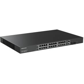 Portas do interruptor: portas PoE 24x10/100/1000 Mbps, portas Gigabit SFP 2x10/100/1000Mbps *2 Gigabit RJ5 Port