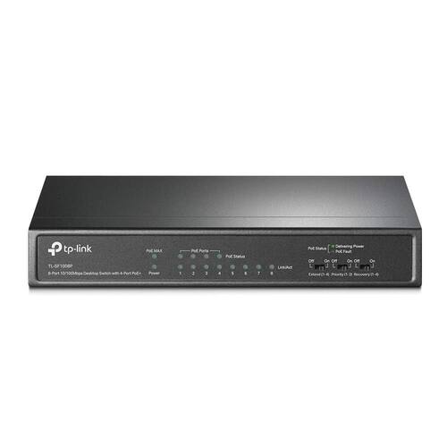 TP-Link TL-SF1008P, comutador PoE de 8 portas 10/100Mbps, 4 portas PoE+ @66W, desktop, Plug & Play, caixa de metal resistente, sem ventilador, modo de extensão e prioridade, recuperação automática