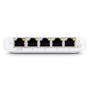 O Switch Ubiquiti UniFi Gen2 5P USW-Flex-Mini é um switch gerenciável de camada 2 com 5 portas Gigabit Ethernet RJ-45, sendo 1 porta de entrada PoE 802.3af. O USW Flex Mini pode ser alimentado através de PoE (na porta 1) ou através da fonte USB-C que acompanha o produto (*). O switch também pode ser monitorado e configurado de qualquer lugar através da interface intuitiva da aplicação UniFi Network, disponível via web ou app móvel.