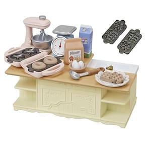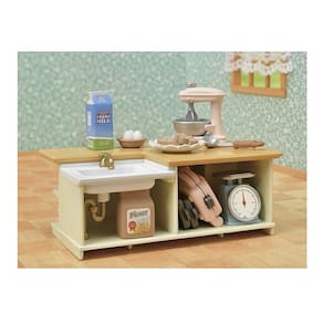 A Cozinha com Ilha é acessível a partir de várias direções diferentes e é o lugar perfeito para fazer rosquinhas e waffles com toda a família. Inclui utensílios de cozinha, cada um com suas próprias características especiais, como balanças que se movem para cima e para baixo, uma batedeira rotativa e uma máquina de waffles e rosquinhas com moldes intercambiáveis. Divirta-se ainda mais jogando junto com nossos outros móveis e designs de cozinha (vendidos separadamente).