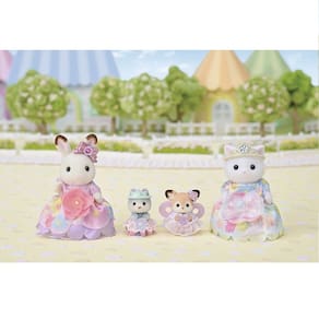 Contém:1x Freya, a Coelha Chocolate com um lindo vestido rosa.1x Lyra, a Gata Persa com um maravilhoso vestido azul floral.1x Rae, a bebê Husky com traje de princesa.1x Rose, a bebê Cervo com traje de princesa.Acessórios encantadores, incluindo 2 tiaras, 1 laço de cabelo com pedra preciosa e 1 anel.