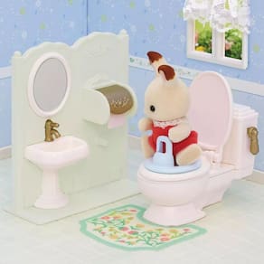 - Este conjunto apresenta um toalete elegantemente projetado, com detalhes realistas que dão vida ao ambiente dos Sylvanian.