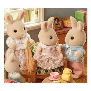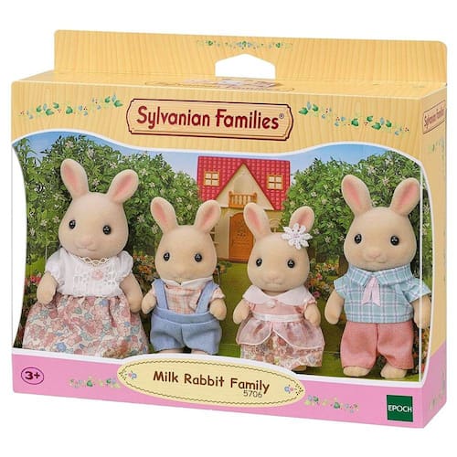 Conjunto com a Família dos Coelhos de Leite vestindo roupas nas cores rosa e azul. Inclui o pai Coelho Leite, a mãe Coelho Leite, o filho Coelho Leite e a filha Coelho Leite. Os braços e pernas dos bonecos podem ser movidos e colocados em diferentes posições. Os vestidos da mãe e da menina têm uma estampa floral charmosa. As roupas podem ser tiradas para mudar o look dos bonecos. Apresentando o pai Coelho Leite Alex, a mãe Kate e seus filhos Rebecca e Oliver. Combine com o Bebê Coelho Leite, os Gêmeos Coelho Leite ou os Trigêmeos Coelho Leite (todos vendidos separadamente) para se divertir com toda a Família Coelho Leite.