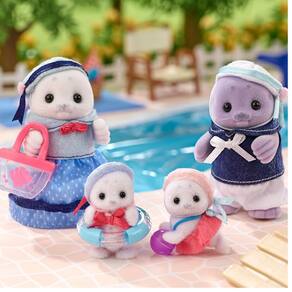 Sylvanian Famlies é uma linha de produtos composta por adoráveis figuras de animais em miniatura, e nesse conjunto você encontra a Família das Focas dos Sylvanian que é Composta Por Quatro Pessoas: Mamãe, Papai e Bebês. o Conjunto Inclui Acessórios Como Bolsa de Praia, Bóia e Bola. Todas As Figuras São Articuladas e Vestidas com Cuidado. Suas Roupas Podem Ser Tiradas e Vestidas Novamente. Os Braços, Pernas e Cabeça Das Figuras São Móveis.