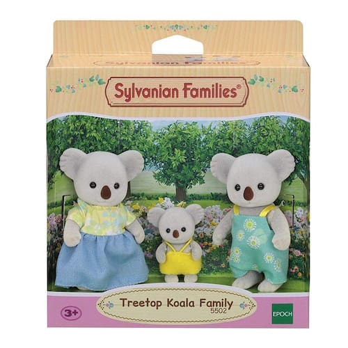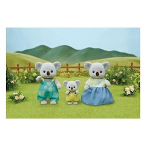 A Família dos Coalas Copa de Árvore está entre os novos amigos da Vila Sylvanian! É um conjunto de três figuras que inclui pai, mãe, e bebê. Você pode mover a cabeça e os membros das figuras do pai, da mãe e do bebê para colocá-los em diferentes poses.