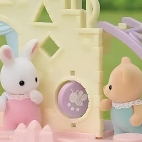 Dados Asicionais: - Marca: Epoch - Vestido com roupas de tecido - Um Playground mascotes bebês. - Inclui um mascote: Bebê Coelho Neve Sophie. - Inclui vários acessórios: escorregador, escada e gangorra. - Estimula a interpretação criativa de crianças - As casas de bonecas em miniatura, os conjuntos e as figuras Sylvanian Families são brinquedos clássicos e atemporais de alta qualidade. - Adequado para maiores de três anos