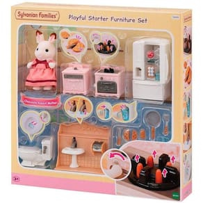 Sylvanian Families - Primeiros Móveis Divertidos - Epoch O Conjunto Primeiros Móveis Divertidos permite que você gire a maçaneta do fogão para revelar uma chama. Coloque a torta de maçã ou baguete na mesa de corte e corte-a com a faca. Coloque uma xícara no dispensador de gelo da geladeira para fazer o gelo sair. Abra a torneira da pia para que a água saia. Puxe a alça do vaso sanitário para dar descarga. Certificação CE - BRI/INNAC - 00890-01ADimensões do produto 20.5 x 26 x 28.3 cm; 1.51 Quilogramas