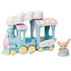 O Trem Arco-Iris Flutuando na Nuvem conta com um lindo desfile com muitas pecas moveis, junto com o bebe Raposa-do-deserto de orelhas longas.