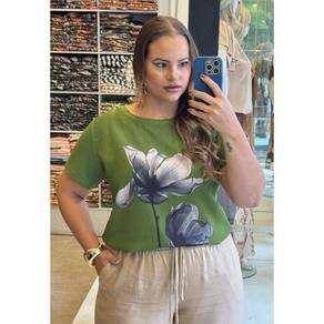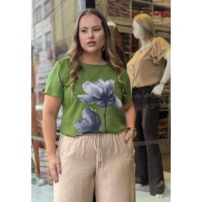 Blusa T-shirt Plus Size com Estampa Floral Localizada Renove seu guarda-roupa com estilo e conforto com a T-shirt Plus Size com estampa localizada floral. Confeccionada com tecido de alta qualidade, essa peça une sofisticação, versatilidade e um toque artístico que transforma qualquer look casual em uma produção elegante. A frente da blusa é feita em poliéster liso com estampa floral marcante, que valoriza o visual e adiciona personalidade à produção. As costas são confeccionadas em malha Vicenza, garantindo leveza, elasticidade e ótimo caimento no corpo. Com modelagem ampla, gola redonda e mangas curtas, essa T-shirt é perfeita para os dias de calor, proporcionando frescor e liberdade de movimento. Ideal para compor looks com calças de alfaiataria, jeans ou saias, ela é uma opção curinga para o dia a dia ou até para ocasiões mais descontraídas que pedem charme e autenticidade.