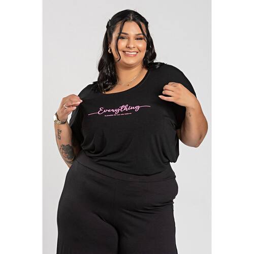 T-shirt feminina plus size elaborada em malha visco decote redondo.