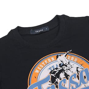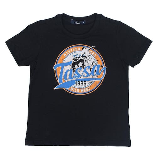 Camiseta infantil na qualidade Tassa, fabricada em tecido 100% Algodão na cor Preto, possui mangas curtas perfeita para os dias de calor, gola tradicional e estampa na parte frontal. Uma peça perfeita para seu pequeno, sendo bastante versátil!