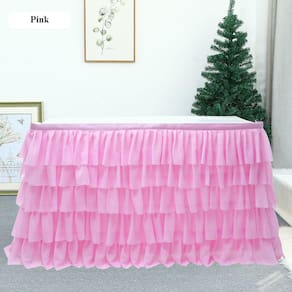 Simples e criativoAltere o estilo da mesaSaia de mesa de tule pode ser reutilizadaA saia de mesa de tule é perfeita para casamentosAdequado para festas de aniversário, cerimôniasFácil de configurar e usarFeito de materiais de alta qualidadeCom fita colorida