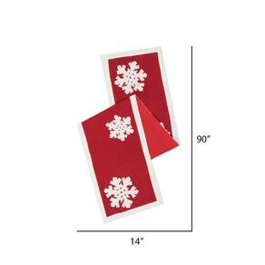 Corredor de mesa decorativo Vickerman de 14" x 90" Felt Flakes. O toque final perfeito para qualquer decoração natalina, este lindo corredor de mesa apresenta um pano de pato festivo de algodão aplicado em flocos de neve de feltro branco; borda com faixas de feltro e é totalmente forrado.