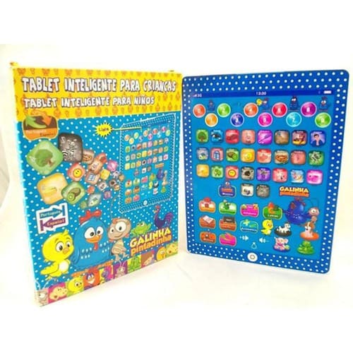 Tablet Infantil Multifunções Da Galinha Pintadinha Educativo criançasTablet Infantil Super Educativo Inteligente Galinha PintadinhaÈ Ótimo Para O Desenvolvimento Auditivo E Visual.Possui Botão Liga E Desliga, Números De 0 A 9Cores, Volume,Números, Matemática, Vogais, Perguntas, Alfabeto, Letras, Palavras , Ortografia, Aritimetica E Músicas Da Galinha Pintadinha E Muito Mais...As Crianças Vão Se Divertir A Valer Com Um Brinquedo Que, Também Estimula O AprendizadoDesenvolvimento Lógico Capacidade Cognitiva RaciocínioOBS:Não é um tablet de verdade, não possui partes de vidro, portando não é Touch. Se trata de um brinquedo eletrônico fabricado em plástico que que apenas emite sons e proporciona entretenimento e interatividade.Desenvolve:Habilidade VisualHabilidade AuditivaHabilidade Tátil-VisualHabilidade MusicalIDIOMAS - PORTUGUÊS E ESPANHOLFunciona Com 3 Pilhas Aaa Não Inclusa .Botão Liga/Desliga.Indicado Para Crianças Acima 3 Anos.Embalagem Como Se Fosse 1 LivroTamanho 24,5cm x 19 cmObs:Não É Display É Tela FixaNão É TouchSem Acesso A InternetNão Abaixa JogosNão É Tablet De Verdade Trata-Se De 1 Brinquedo Com Atividades Educativas