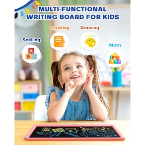 Bravokids Tablet LCD de 15 polegadas para crianças de 3 anos - Bloco de desenho eletrônico e quadro de rabiscos como presentes educativos de aniversário para meninas e meninos (rosa) - Tela colorida de proteção ocular: tela LCD colorida de 15 polegadas, fácil de visualizar e graffiti, imaginação da criança livre. Este tablet de desenho infantil sem radiação, sem brilho, seguro e confortável, até mesmo as crianças usam por um longo tempo. Brinquedos educativos de aprendizagem, presentes de aniversário para meninas de 3 anos. - Proteja o meio ambiente: mais de 100.000 vezes reescrevendo suavemente, economize milhares de papel e tinta com apenas uma prancheta, reduza o corte de árvores. Proteja nosso meio ambiente a partir de agora! - Fácil de usar: o quadro de desenho para tablet cria linhas como escrita e desenho no papel, a espessura diferente com base na força que você empurra com caneta, unhas ou qualquer coisa dura. Esvazie o conteúdo da tela em um segundo pressionando o botão de orelha, economize tempo e uso conveniente. Clique na tecla de bloqueio do quadro de rabiscos para salvar o conteúdo. - Portátil e durável: os tabletes de desenho para crianças são feitos de plástico durável, além de design de canto redondo, anti-queda e anti-choque, não precisa se preocupar com as crianças deixá-lo cair. O tablet de desenho pesa apenas 150 gramas, fácil de transportar, colocar em mochilas escolares, bolsas, bolsas de viagem. - Mantenha as crianças barulhentas e afinadas: você está enfrentando a confusão de como silenciar uma criança barulhenta? O tablet de escrita LCD permite que as crianças mergulhem silenciosamente no mundo do arco-íris. O quadro de rabiscos também pode ser utilizado em vários lugares: avião, carro, restaurante, sofá, etc. Os itens essenciais de viagem perfeitos para crianças!! !