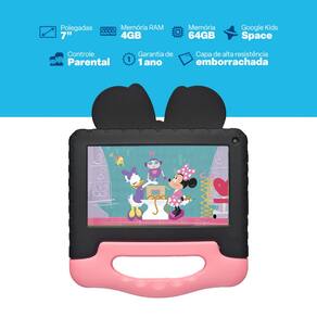 Marca: Multi Modelo: Tablet Multi Minnie com Controle Parental 7 pol 4GB RAM 64GB Android 13 Quad Core + Case + Wi-fi - NB414 Cor: Preto Tela: 7 Pol Conexoes: Wi-fi, Bluetooth Memoria Interna: 64GB expansivel ate 128 GB por cartao microSD -nao incluso- Memoria RAM: 4GB -2GB interno + 2GB memoria virtual - Sistema Operacional: Android 13 -Go edition- Processador: Quad Core Capacidade da Bateria: 2.800mAh Camera frontal: 2MP Dimensoes -LxAxC-: 11.6 x 1.3 x 19.2cm Peso: 500g Certificado Anatel: 07453-18-03111 Garantia: 1 ano