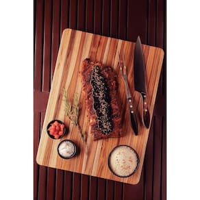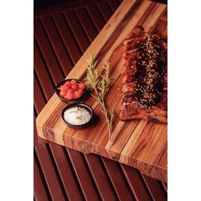 A tábua churrasco com empunhadura Tramontina 400x300x30 mm fabricada madeira teca FSC com acabamento em óleo mineral é perfeita para churrascos e ocasiões especiais. Seu acabamento realça a beleza da madeira. Espaçosa, prática e elegante para impressionar seus convidados.