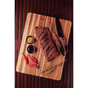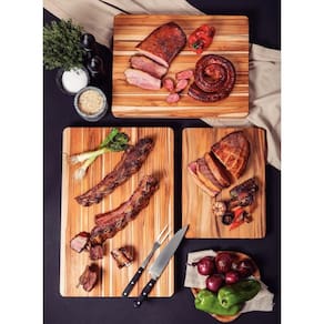 A Tábua com Empunhadura para Churrasco Tramontina é o complemento ideal para os seus churrascos e eventos especiais. Com dimensões de 40x30 cm e uma empunhadura ergonômica, é fabricada em madeira teca certificada pelo FSC, garantindo sua origem sustentável.