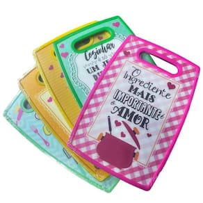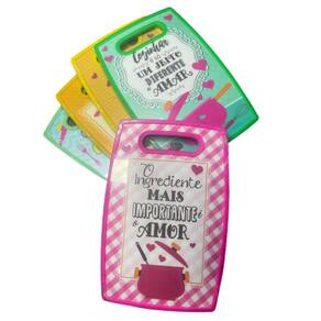 O modelo é prático e multiuso, ideal para cortar carne, verduras, legumes e frutas. A tábua de corte tem uma espessura de 6mm e vem com uma alça para facilitar o manuseio.