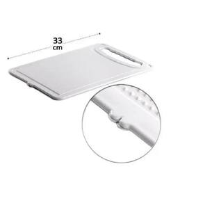 Tábua corte carne legumes plástico reforçado resistente ----loja oficial do click compras na internet---- Somos um dos melhores vendedores do site, nossa missão é atender com amor e carinho nossos clientes, oferecendo sempre o melhor atendimento e produtos de excelência. São milhares de produtos entregues e clientes satisfeitos. ----loja oficial do click compras na internet---- O kit compõe todas as peças da foto principal Produto em O modelo da tábua é prático e multiuso, ideal para cortar carne, verduras, legumes e frutas, sendo uma peça essencial para a sua cozinha. fabricada em polietileno, um material leve e resistente, esta tábua de corte evita a formação de mofo, seca rapidamente e é fácil de lavar. Além disso, possui uma pequena cavidade lateral para impedir o vazamento de líquidos, garantindo uma maior higiene e limpeza durante o uso. A tábua de corte tem uma longa vida útil e vem na cor branca lisa, combinando com qualquer decoração de cozinha. Especificações: - material: polietileno; - cor: branca; - tamanho: 33cm de comprimento x 22cm de largura. Marca: Não Informado
