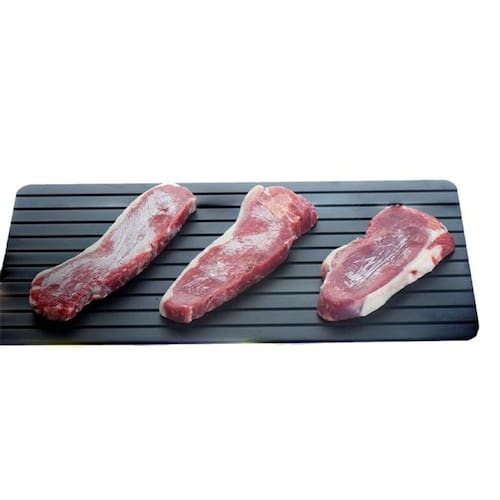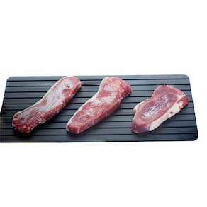 A Tábua Degelo é ideal para descongelar alimentos de maneira muito mais rápida e fácil. A bandeja é capaz de acelerar o processo de descongelamento para, em média, metade do tempo, podendo variar de acordo com a espessura do alimento. Composição: alumínio Validade indeterminada Superfície antiaderente Ideal para descongelar carnes, peixes, aves, entre outros Sem necessidade de eletricidade, produtos químicos ou aquecimento Utilidade: descongela seus alimentos de forma rápida e fácil Medidas aproximadas: Comprimento: 31 cm Largura: 20,5 cm Itens inclusos: 1 Tábua para descongelar alimentos