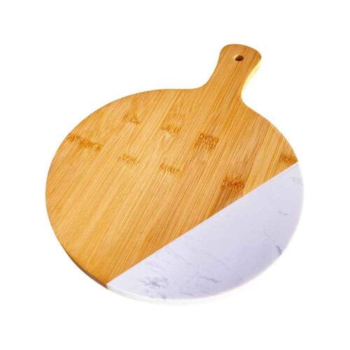 Tábua de Bambu e Mármore Branco Redonda Linda tabua de Bambu para decorar sua cozinha e uma ótima opção para servir petiscos, pães e doces. As tabuas em madeira e mármore além de lindas e modernas vão dar um toque super contemporâneo a sua cozinha e mesa posta. Dicas de Uso para Tabua de Bambu e Mármore - Servir- Cortar- DecorarPosso Servir: Frios, sanduíches, entradinhas e etc. Tamanhos e Medidas da Tabua de Bambu e Mármore Medidas: 36 cm x 26 cm x 1,5 cmMaterial: Bambu e Mármore Marca: Oikos