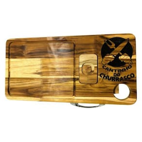 Tábua de carne inteligente para churrasco com porta lata e gavetaA tábua de carnes inteligente para churrasco é um produto diferenciado para os amantes de churrasqueira. Ela conta com um excelente espaço de 31x24cm para o corte de carnes, uma gaveta em alumínio para que toda a carne cortada possa ser colocada e posteriormente servida e também conta com um porta latas para apoio ao churrasqueiro. Além disso, a tábua conta com um belo desenho em alto relevo, usinado e pintado para dar um toque ainda mais especial. Sem dúvidas, essa tábua é excelente para os fanáticos por churrasqueiraInformações técnicas:Tamanho disponível para o corte de carnes: 31x24cmTamanho interno da gaveta cxlxa : 25x17x4cmTamanho total da tábua cxlxa : 60x29,5x7cmPeso total: 1,5kgTipo de madeira: naval tecaEspessura da tábua: 2cmAcabamento: óleo vegetalDesenho: alto relevo, usinado e pintadoCor: madeira Marca: Emporio Canto Do Churrasco