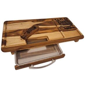 Tábua de carne com gaveta feita em madeira naval teca