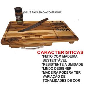 Tabua de churrasco com gaveta churrasco amigos e muita cerveja Tábua de carne com gaveta feita em madeira naval teca Otima resistencia Desenhos em alto relevo usinados e pintados Acabamento em óleo vegetal Lixada Tábua acompanha uma assadeira número 1 baixa em alumínio e uma tampa para o recipiente de carne, também um recorte para encaixar a latinha de cerveja da sua marca preferida. : Ótimo presente para quem adora um churrasco. As cores podem sofrer variações em relação a foto por conta da madeira. Medidas: 60x30x7cm Marca: Não Informado