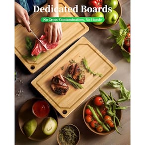 3. Feita de bambu 100% natural, a tábua de corte Kitsure é uma excelente escolha para preparação de alimentos. Não inferior à tábua de corte de açougueiro, a tábua de corte de carne Kitsure é adequada para cortar e cortar pesados. Sua superfície lisa e pré-lubrificada é excepcionalmente suave em facas, ajudando a manter suas lâminas afiadas por mais tempo.