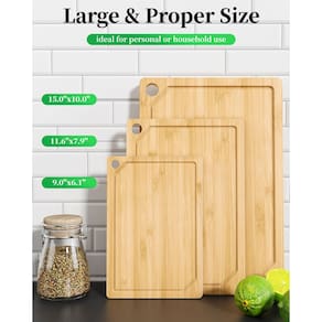 - VÁRIOS TAMANHOS: A tábua de corte de madeira Kitsure vem em vários tamanhos. A tábua de 15 “× 10" é ideal para uso diário, a tábua compacta de 11 “× 7" funciona bem para trabalhos rápidos, como fatiar frutas, e a tábua maior de 18 “× 12" é adequada para trabalhos mais extensos, como esculpir assados. Conjuntos de tábuas de corte com vários tamanhos também estão disponíveis no Kitsure, permitindo que você manuseie diferentes ingredientes ao mesmo tempo.