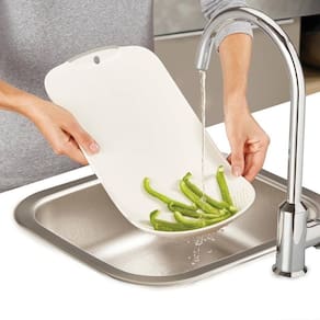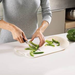 Corte, lave e escorra seus alimentos de modo prático com Tábua de Corte com Escorredor Quanhe.