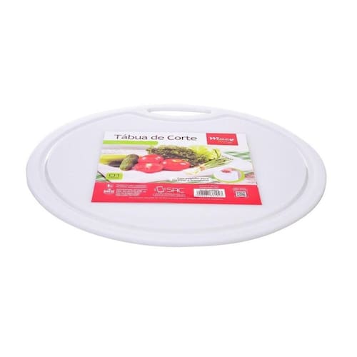 Tabua de corte c pegador rd 37 x 37 cm pt tabua de plástico para corte de alimentos branca, redonda com 37cm de diâmetro 1 cm de espessura. Seja nos encontros entre amigos e familiares, ou para refeições preparadas no dia a dia a tábua plástica redonda é um utensílio que auxilia e da maior praticidade ao momento e agilizada nas tarefas culinárias. Além de um item indispensável na cozinha, esta tábua é confeccionada em plástico é indicada por ser um material simples de ser manuseado e de fácil higienização. Marca: Não Informado