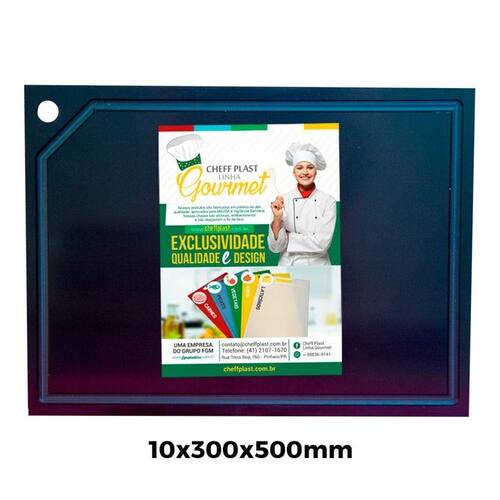 Tábua De Corte Churrasco Polietileno Pead Preto 10X300X500Mm