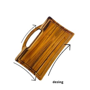 Uma tábua com design moderno e de excelente qualidade, trazendo um charme a mais na hora de cortar e servir. Alça em formato anatômico, facilitando o manuseio e armazenagem. Possui sulco arredondado para facilitar ainda mais a limpeza e higienização. Confeccionada em madeira teca, uma madeira de reflorestamento de alta resistência, fácil secagem, peça ecologicamente correta Possui proteção antibacteriana, que inibe a proliferação de bactérias e microorganismos.