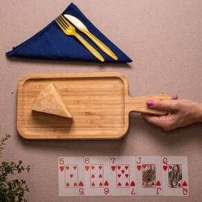 Essa é a Tábua de Corte de Bambu 34 cm. Versátil, bacana para cortar carnes, legumes, pães e muito mais! Possui design decorativo, ela também ajuda a compor a decoração da mesa e da casa. O tom natural do bambu dá um toque rústico ao ambiente. Durável e higiênica, o bambu é um material resistente e com propriedades que evitam a proliferação de bactérias.