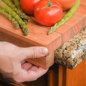 - Tábua de corte feita em madeira no formato 'L';