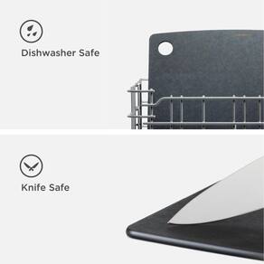 - Tábua de corte de 17,5 polegadas x 33 cm em ardósia; feita nos EUA de material composto de papel Richlite; torna a tábua de corte durável, amigável com facas, não porosa