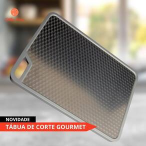 Tábua de corte gourmet Retangular dupla inox e polietileno 36x26cm