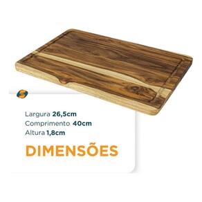 - Contém: 01 Tábua de Madeira Teca - Dimensão: 26,5cm x 40cm x 1,8cm - Largura 26,5cm - Comprimento 40cm - Altura 1,8cm- Marca: Nitron