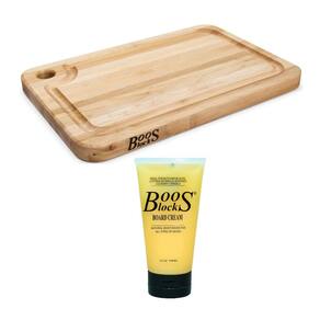 Pacote de tábua de corte reversível John Boos Maple Wood com Juice Groove e Butcher Block Board Cream (5 onças) (2 itens)